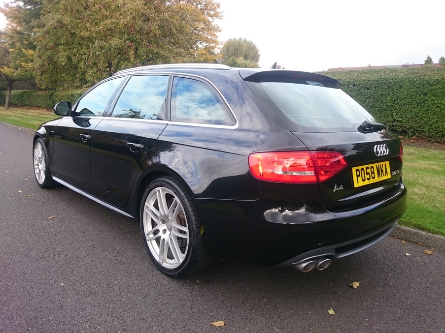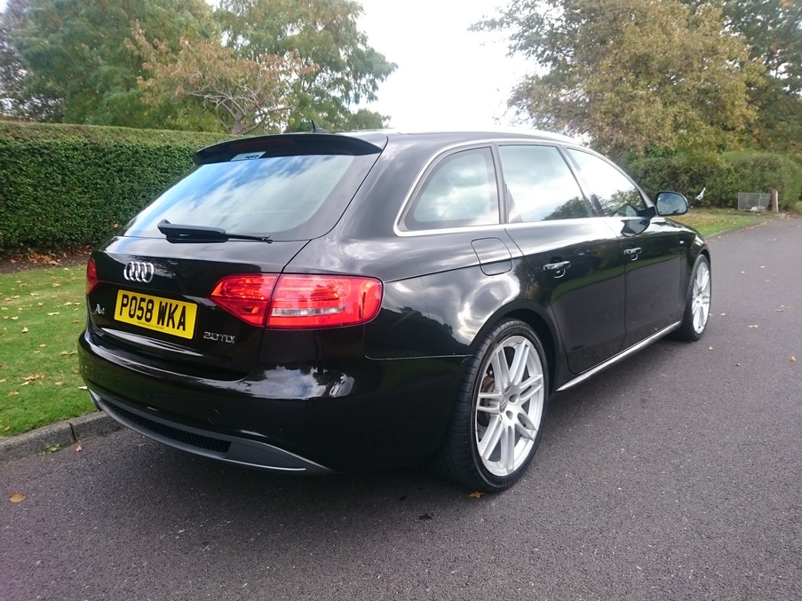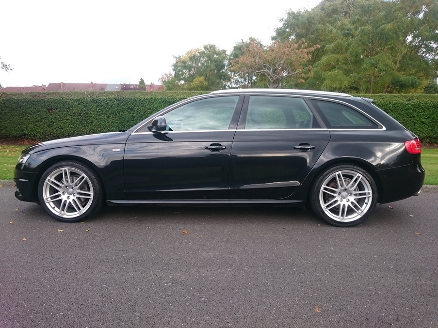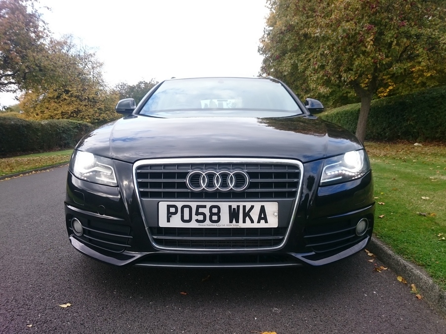 Stunning black A4 Avant S Line with a full service history including cambelt and lovely specification., Upgrades - DVD Satellite Navigation, Mobile Telephone Preparation - High, Heated Front Seats, Audi Music Interface (AMI), Xenon headlights with Daytime Running Lights, 4-Spoke Multifunction Leather Steering Wheel, Last serviced on 04/04/2016 at 76,735 miles, Full service history, Black Part leather interior, Standard Features - Deluxe 3 - Zone Climate Control w. Separate Air Distribution and Digital Display, Thatcham Category 1 Alarm, Drivers Information System (DIS) in Colour, Audi Concert Radio - CD Player with MP3 Compatibility, 6.5in Colour Centre Console Screen, and SD Memory Card Reader, 18in x 8J 5 - Spoke S Line Design Alloy Wheels with 245/40 R18 Tyres, Electric Front and Rear Windows, Automatic Windscreen Wipers, Upholstery - Cloth/Leather Combination. 5 seats, Metallic Phantom Black, Full dealer facilities including warranty and finance at competitive rates subject to status.