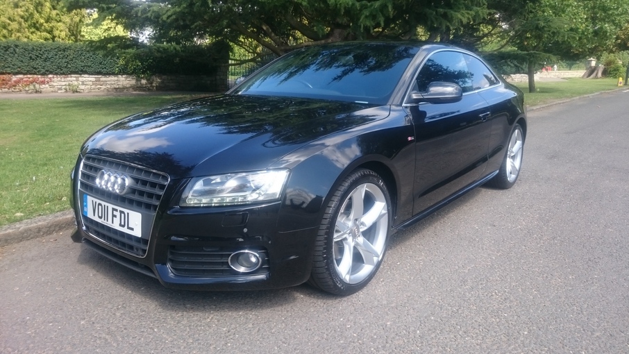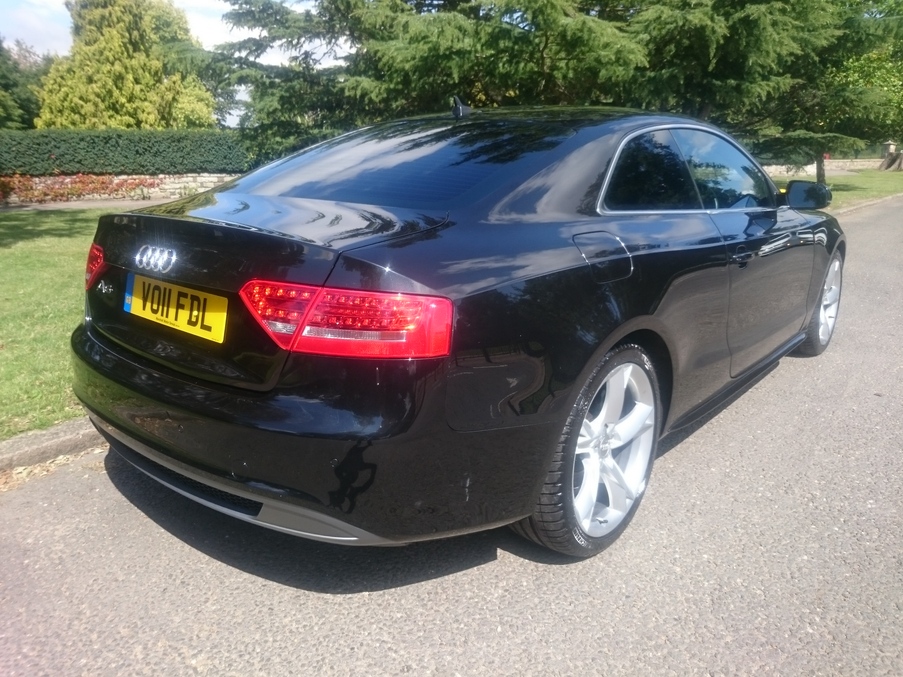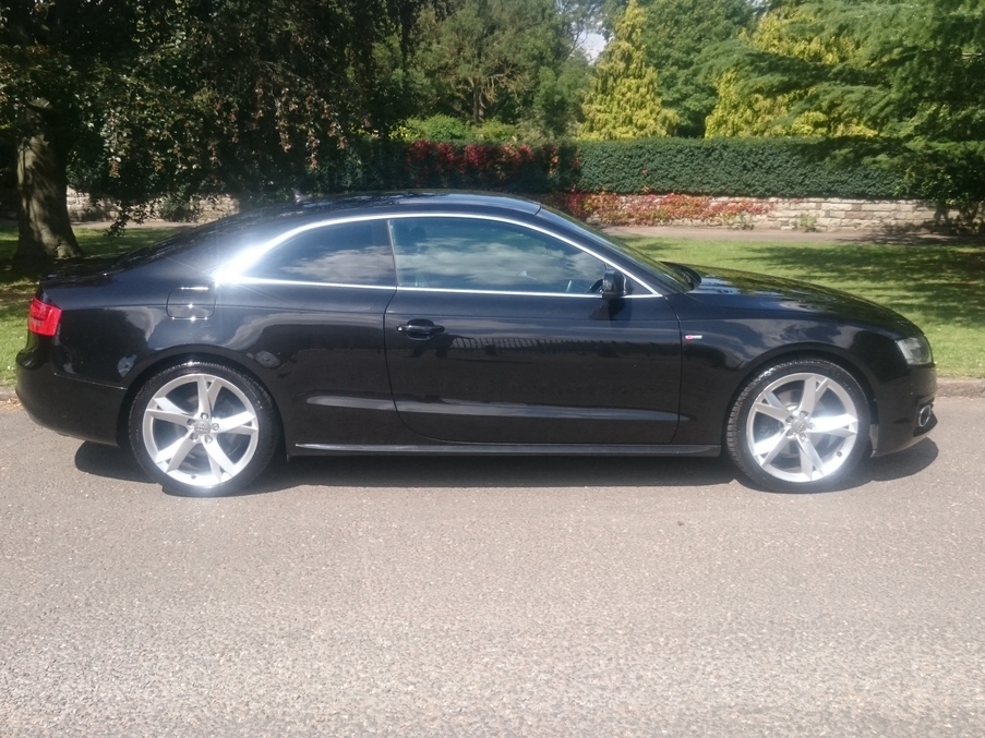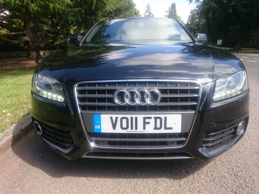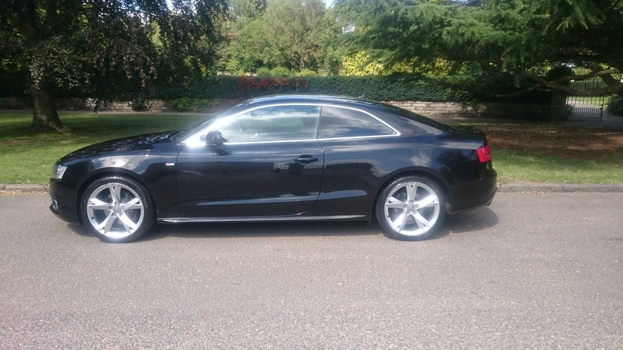 Stunning A5 S Line automatic in Phantom Black and full black leather interior. Always serviced at Audi with five dealer visits recorded, last in March 2017. Satellite navigation, Bang & Olufsen sound and Audi Music Interface are just the highlights of this well specified example., Upgrades - DVD Satellite Navigation, S Line Valcona Leather, Bang & Olufsen Sound, Audi Music Interface, Cruise Control, Bi-Xenon Headlamps with Daytime LED, Last serviced on 31/03/2017 at 52,682 miles, Full dealership history, Black Full leather interior, Standard Features - Deluxe 3 - Zone Climate Control, Rear Acoustic Parking System, DAB Digital Radio, Bang & Olufsen Sound System, Audi Concert Audio System - Single CD with MP3 Compatibility - Colour Screen - SD Memory - Card Reader and AUX - IN Socket, Colour Drivers Information System (DIS), 19 in 8.5J 5 - Spoke Y Design Alloy Wheels with 255/35 R19 Y Tyres and Locking Wheel Bolts, Upholstery - Milano Leather, Automatic Windscreen Wipers, Electric Front Windows, Thatcham Category 1 Alarm. 4 seats, Metallic Phantom Black, Full dealer facilities including warranty and finance at competitive rates subject to status., Due to our high turnover of stock we recommend you call to book an appointment prior to viewing.