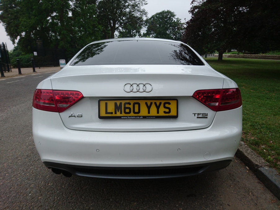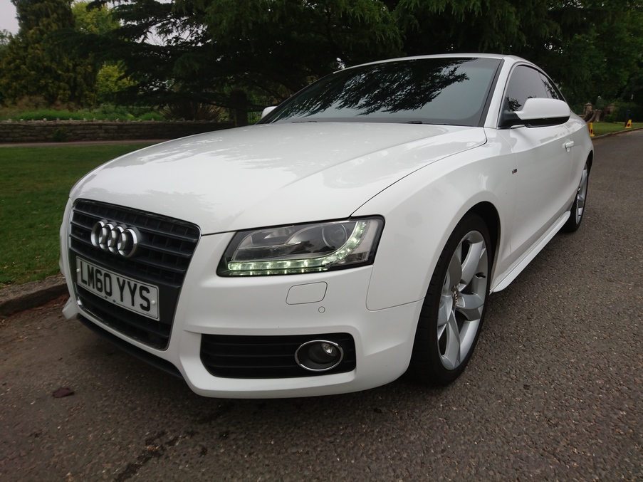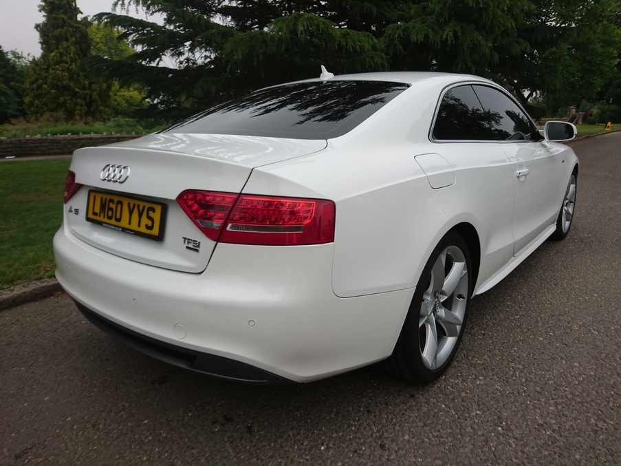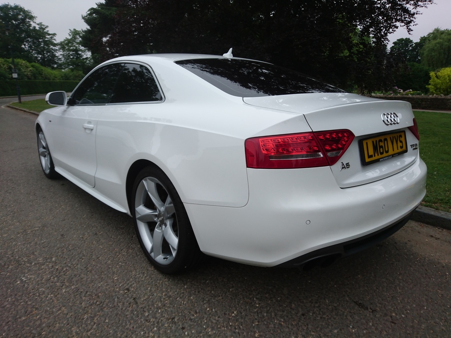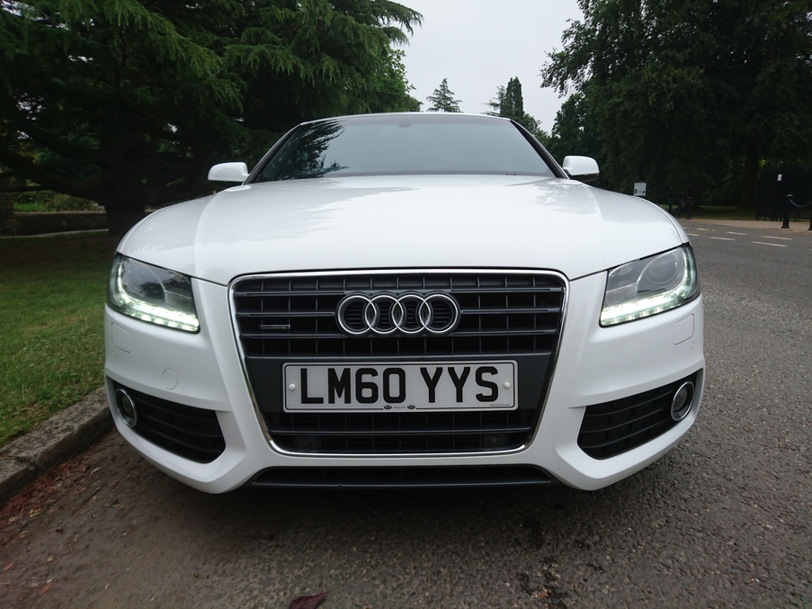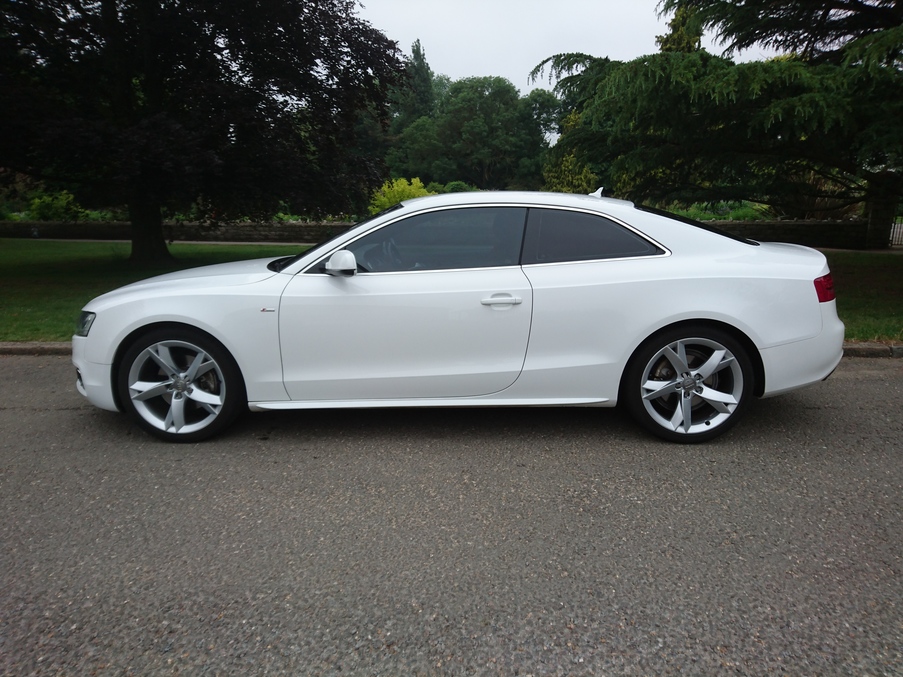 Stunning, rare Quattro A5 S Line S Tronic in Ibis White with Full Valcona Leather. Extensive Specification worth over £7000 from factory, full listing below. 4 Audi main dealer services and a full service just completed by ourselves including S Tronic gearbox oil and filter change., Upgrades - DVD Satellite Navigation, Audi Exclusive Valcona Leather, Bang & Olufsen Sound, Technology Package, Cruise Control, Audi Parking System Plus, Audi Music Interface, Bluetooth Mobile Phone Connection, Heated Front Seats, Door Mirrors El. Folding & Auto Dimming, Interior Light Pack, Piano Finish Black Inlays, S Line Sports Suspension, Storage Pack, Black Full leather interior, Standard Features - Deluxe 3 - Zone Climate Control, DAB Digital Radio, Rear Acoustic Parking System, Bang & Olufsen Sound System, 19 in 8.5J 5 - Spoke Y Design Alloy Wheels with 255/35 R19 Y Tyres and Locking Wheel Bolts, Colour Drivers Information System (DIS), Automatic Windscreen Wipers, Electric Front Windows, Audi Concert Audio System - Single CD with MP3 Compatibility - Colour Screen - SD Memory - Card Reader and AUX - IN Socket, Thatcham Category 1 Alarm. Ibis White, Full dealer facilities including warranty and finance at competitive rates subject to status., Due to our high turnover of stock we recommend you call to book an appointment prior to viewing.