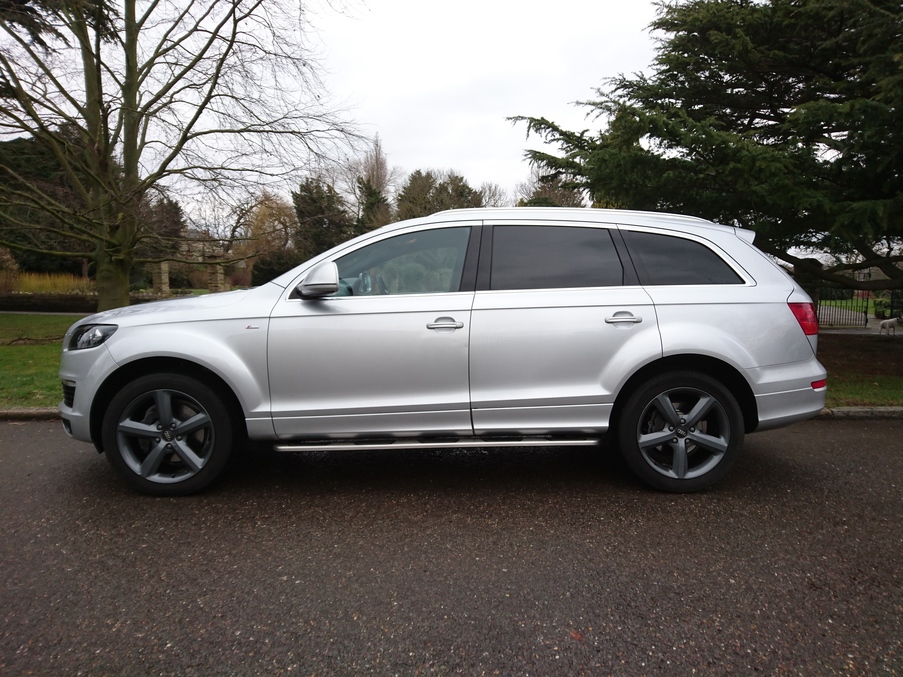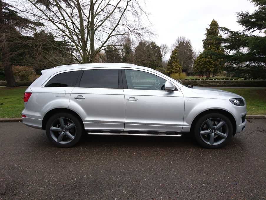 Incredibly well specified Q7 in Silver with full black Nappa leather. The full options list is below but include highlights such as Satellite Navigation, BOSE Sound, Reverse Camera, Power Tailgate, DAB Radio and much much more. A full service history completes the package of this fantastic example, Upgrades - DVD Sat Nav System, BOSE Surround Sound System, Exclusive Fine Nappa Leather Pack 1, Audi Music Interface, Audi Parking System Advanced, Seat Heating for Front Seats, Stainless Steel Running Boards, Electric Tailgate inc unit for Luggage Comp.Lid, Technology Pack, MMI High, Comfort Armrest with Cups and Storage, Metallic Paint, CD Autochanger, DAB Module into MMI, Parking System with Warning and Display on MMI, Auto Dimming /Folding Mirrors, Last serviced on 12/03/2018 at 108,002 miles, Full service history, Black Full leather interior, Four wheel-drive, Standard Features - Computer (Driver Information System), In Car Entertainment (Radio/CD), Climate Control, Parking Aid (Rear), Seats Electric (Driver/Passenger), Alloy Wheels (18in), Cruise Control, Armrest, Seats Heated (Driver/Passenger), Electric Windows (Front/Rear), Alarm, Electrically Adjustable Front Seats, Rear View Camera. 7 seats, Metallic Silver, Full dealer facilities including warranty and finance at competitive rates subject to status., Due to our high turnover of stock we recommend you call to book an appointment prior to viewing.