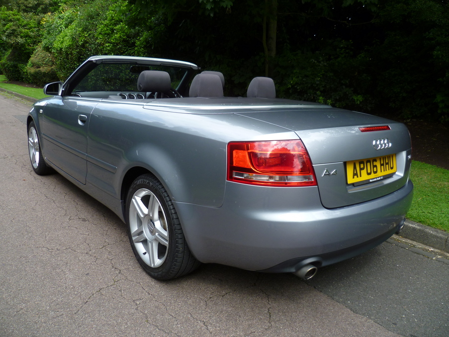 2 Doors, Manual, Cabriolet, Petrol, 2006 06 Reg, 73000 miles, Metallic Grey. Stunning A4 1.8T Convertible with a Full Audi Main Dealer Service History. ABS, Adjustable seats, Adjustable steering column/wheel, Alloy wheels, Anti theft system, Cloth upholstery, Climate Control, Driver airbag, Electric mirrors, Electric windows, Foglights, Metallic paintwork, Multi function steering wheel, Power assisted steering, Remote locking, Radio/CD, Sports seats, Traction control, Full Audi Service History. Insurance Group:15, Full Dealer Facilities including Warranty and Finance at Competitive Rates Subject to Status.