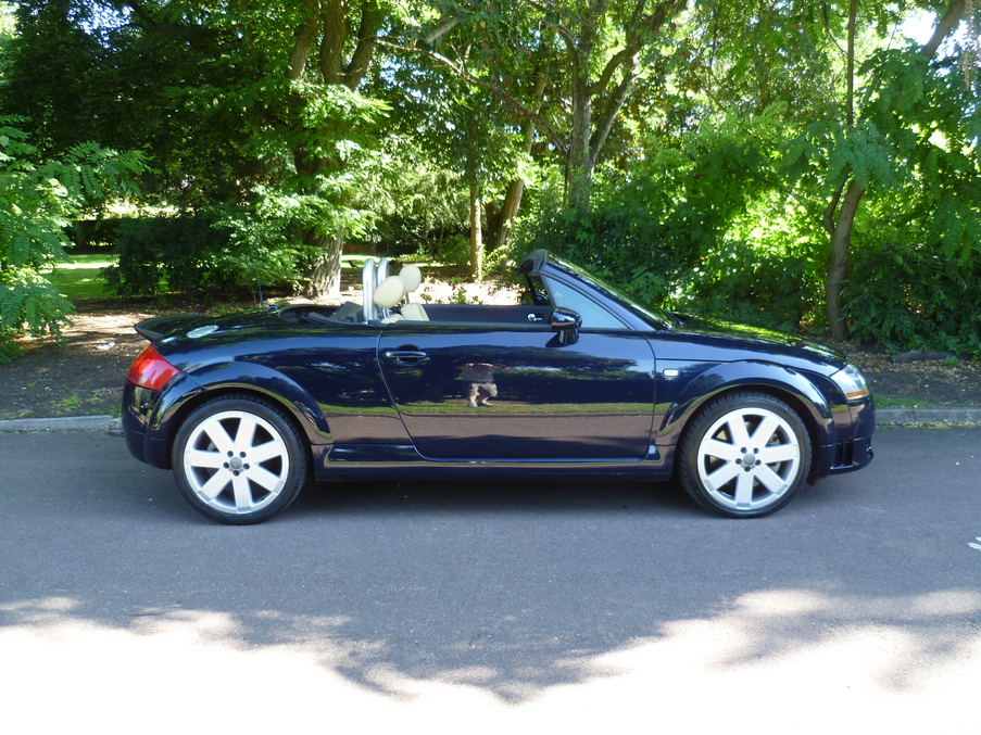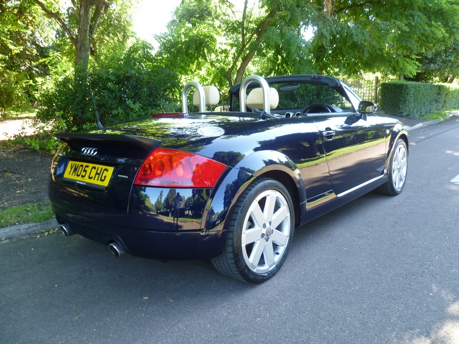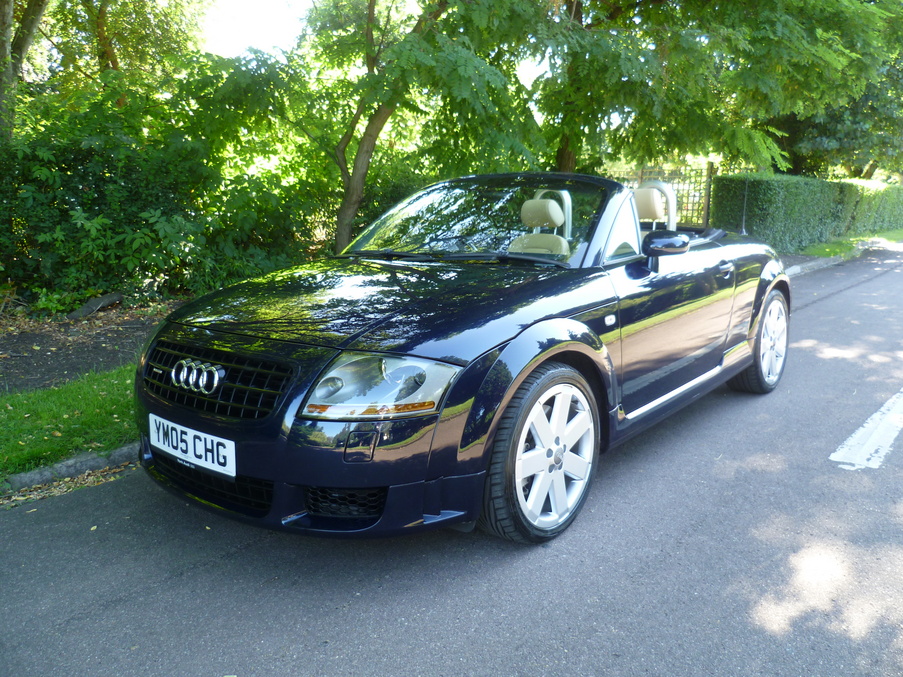 2 Doors, Automatic, Petrol, 2005 05 Reg, 13500 miles, Metallic Blue, MOT-08-2013. Absolutely immaculate 3.2 Quattro TT Roadster. Extremely low mileage means that this example looks as stunning as it did when it left the showroom. Fantastic colour combination of dark metallic blue and pristine cream leather makes this the best looking TT convertible on the market bar none. With a Full Audi Main Dealer Service History, BOSE Sound and Heated Leather Seats. ABS, Alloy wheels, Headlight washers, Immobiliser, Passenger airbag, Radio/Cassette, Sports seats, Side airbags, Traction control, Alarm, Front electric windows, Front fog lights, Leather seat trim, Steering wheel rake adjustment, Steering wheel reach adjustment, Body coloured bumpers, Heated door mirrors, Height adjustable drivers seat, Remote central locking, Service indicator, Electric door mirrors, PAS, Trip computer, Drivers airbag, Metallic Paint, Front head restraints, Heated front seat. Insurance Group:20, Full main dealer facilities including warranty and seven day insurance.