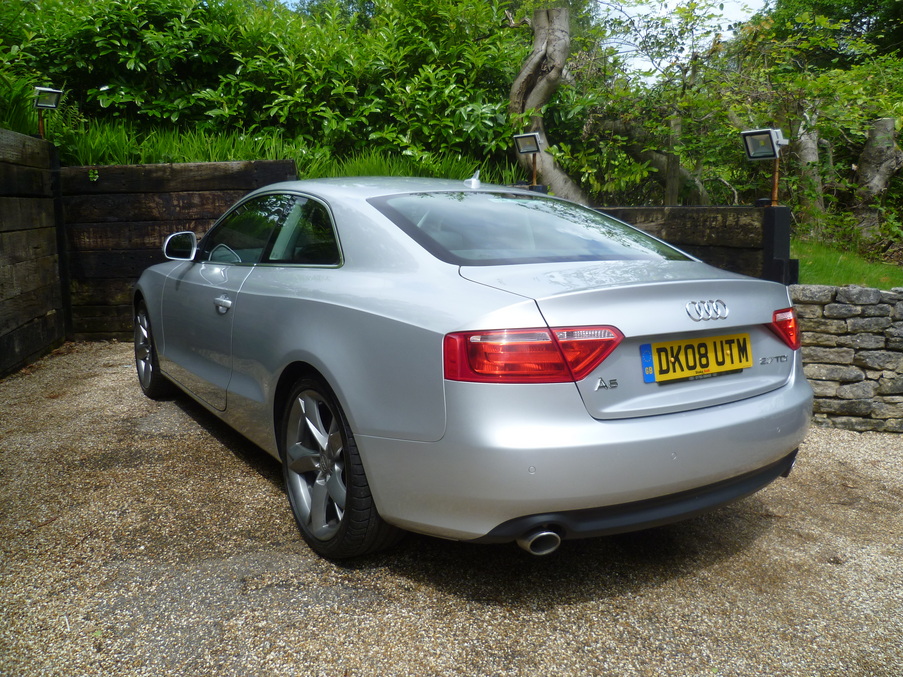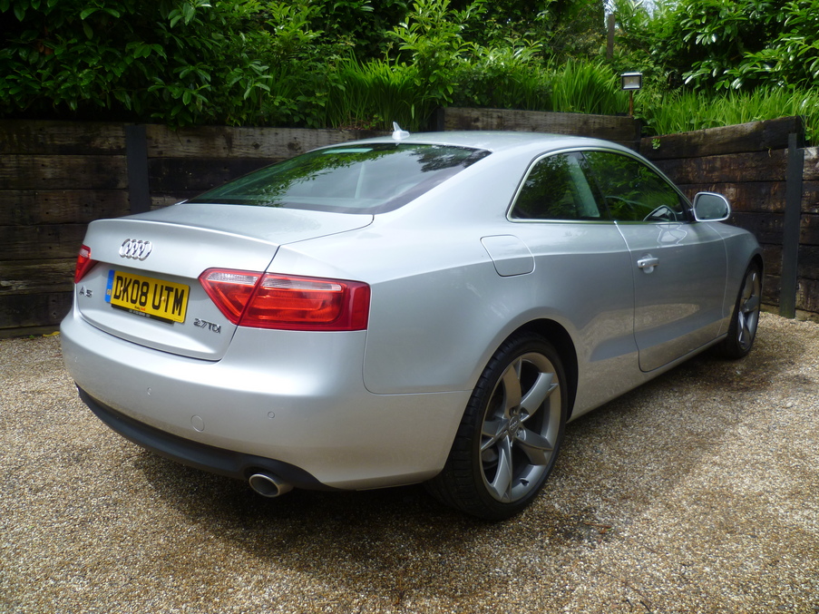 Metallic Ice SIlver, Stunning A5 2.7 TDi Sport, with 19" Wheels, Full Black Leather and a Full Audi Main Dealer Service History, Upgrades - 19" 5 spoke Y design alloy wheels, 12 months MOT, Last serviced on 26/11/2013 at 89,381 miles, Full dealership history, Excellent bodywork, Black Full leather interior - Excellent Condition, Tyre condition Excellent, Standard Features - Milano leather upholstery, Xenon headlights including washers + automatic range adjustment, Rear acoustic parking system, Electric front windows, Concert radio/single CD player with MP3 facility, Automatic tri-zone climate control, Adjustable steering column, Electronic Stability Programme + traction control, Front sports seats including electric lumbar support, Anti theft system, 3 spoke sports leather multi-function steering wheel, Heated electric door mirrors, Immobiliser. 4 seats, Full dealer facilities including warranty and finance at competitive rates subject to status