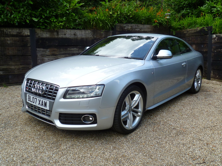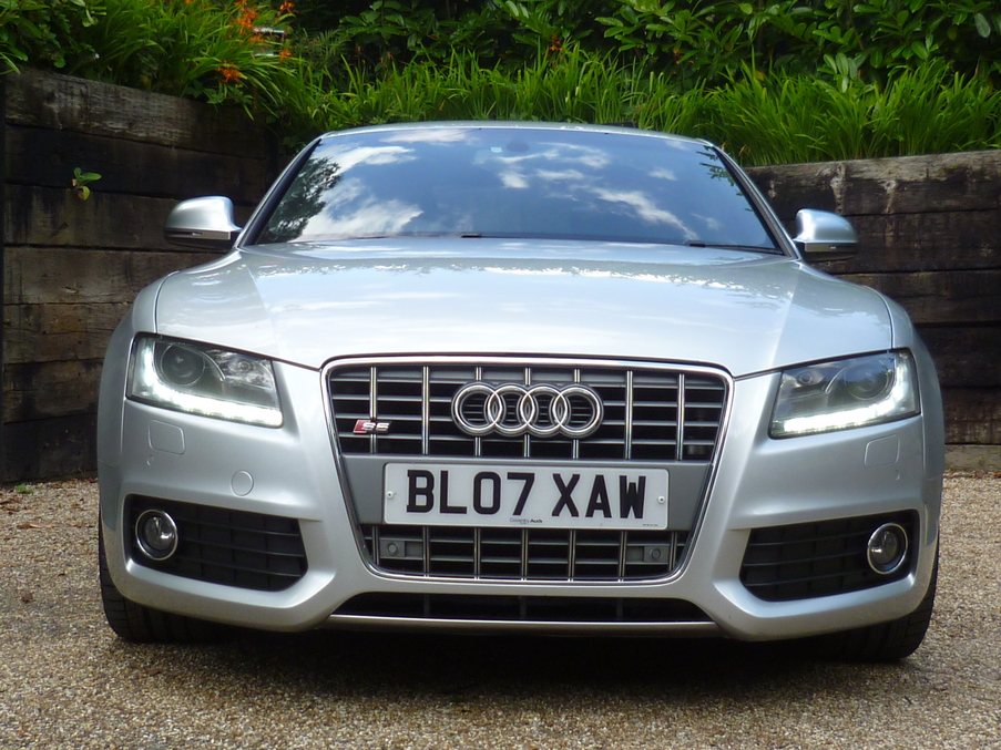 Metallic Silver, Fantastic value S5, with two keys,TRACKER and a huge specification., Upgrades - DVD Satellite navigation system plus with radio/6 CD autochanger + MMI, Analogue + Digital TV reception, Bluetooth mobile phone connection, Audi music interface, Bang + Olufsen advanced sound system, DAB digital radio module, Heated front seats, Homelink (garage door opener), Audi parking system plus, Hill hold function, Cruise control, Auto dimming rear view mirror with light and rain sensors, Electric folding door mirrors, Metallic paint, Advanced key, Next MOT due 26/03/2015, Last serviced on 27/04/2014 at 81,319 miles, Full service history, Black Full leather interior, Tyre condition New, Four wheel-drive, Standard Features - Silk Nappa leather upholstery, Electric front seats, Xenon headlights including washers + automatic range adjustment, Rear acoustic parking system, 19" 5 parallel spoke design alloy wheels, Electric front windows, Concert radio/single CD player with MP3 facility, Automatic tri-zone climate control, Adjustable steering column, Electronic Stability Programme + traction control, Front sports seats including electric lumbar support, Anti theft system, 3 spoke sports leather multi-function steering wheel, Heated electric door mirrors, Immobiliser, Interior light pack - A5/RS5. 4 seats, Full dealer facilities including warranty and finance at competitive rates subject to status