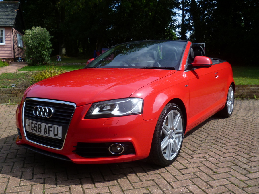 Stunning Misano red A3 Cabriolet S Line, Upgrades - DVD Satellite Navigation PLUS, Xenon PLUS headlamps, Heated front seats, Adaptive lights, Acoustic parking system front and rear, Light and Rain sensor pack, Auto dimming door mirrors, 6 Disc auto changer, Last serviced on 24/09/2014 at 58,357 miles, Full service history, Black Part leather interior, Standard Features - Dual-Zone Electronic Climate Control, 18in x 7.5J 7 Twin - Spoke Design Alloy Wheels with 225/40 R18 Tyres and Locking Wheel Bolts, Driver Information System DIS, Electric Front and Rear Windows, Heat - Insulating Glass, Thatcham Category 1 Alarm, Upholstery - Black Sprint Cloth/Leather Upholstery with Embossed S Line Logo. 4 seats, Solid Misano Red, Full dealer facilities including warranty and finance at competitive rates subject to status.