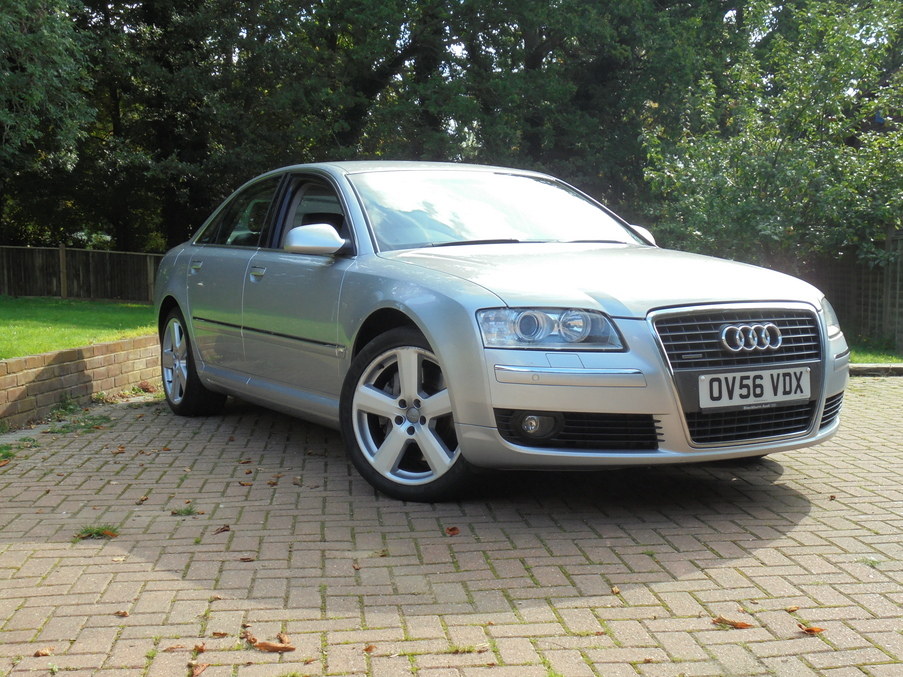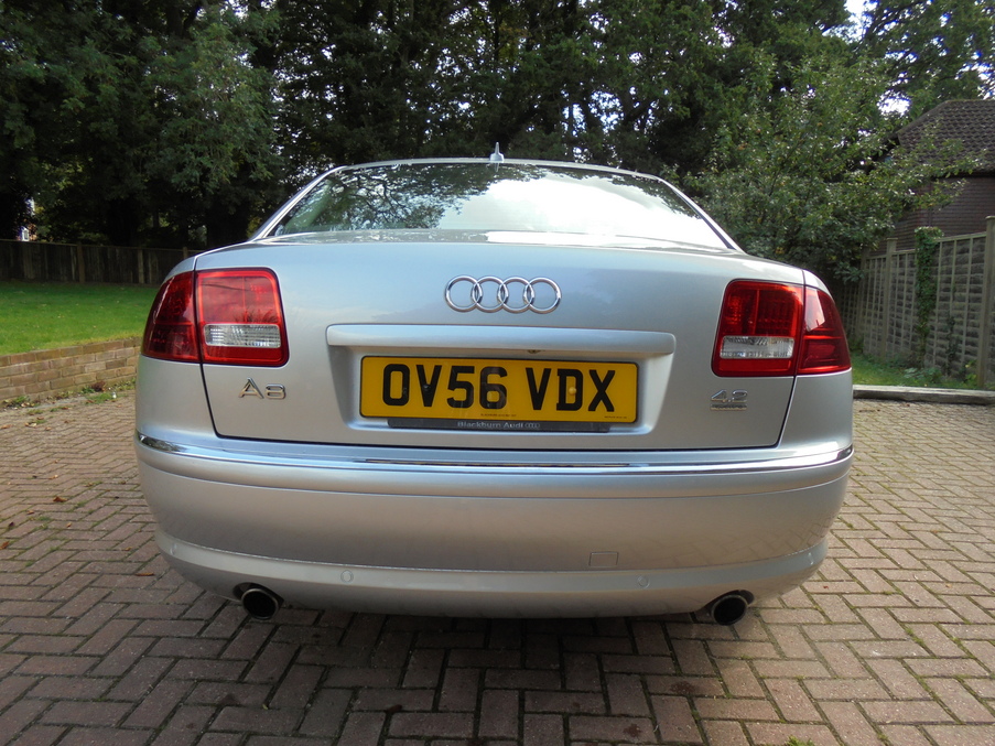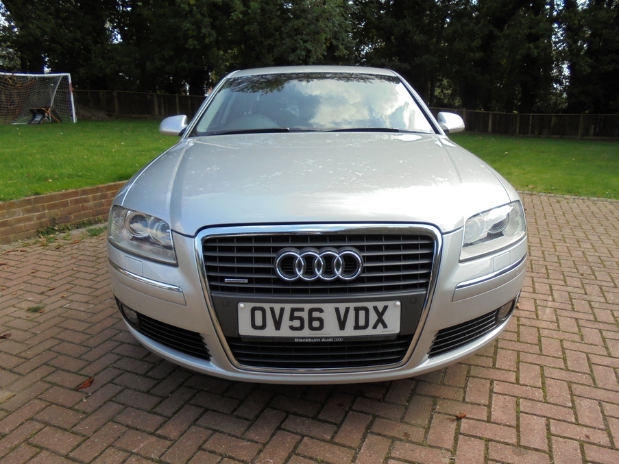 Stunning A8 4.2 FSI with a part service history, recently completed, Upgrades - 9Jx19in 5-Arm Design Alloy Wheels, Power Door Closure, BOSE Surround Sound, Heated Front Seats, Phone - Bluetooth Connection, Last serviced on 07/04/2015 at 71,384 miles, Full service history, Black Full leather interior, Standard Features - Satellite Navigation - DVD, Acoustic and Optical Parking System - Front and Rear, Air-Conditioning (Automatic), Cruise Control, Seats Heating for Front and Rear, 18in x 8.5J 5 - Arm High Gloss Alloy Wheels w. 255/45 R18, Anti - Theft Alarm (Thatcham Category 1 Approved), Bluetooth Mobile Phone Connection, CD Autochanger (6 CD) in Glove Compartment with MMI, Drivers Information System (DIS), Electric Front and Rear Windows, Front Seats - Electrically Adjustable (14-Way) w. Memory, Metallic Paint, Upholstery - Valcona Leather. 5 seats, Metallic Silver, Full dealer facilities including warranty and finance at competitive rates subject to status.