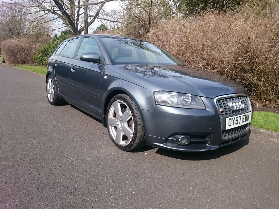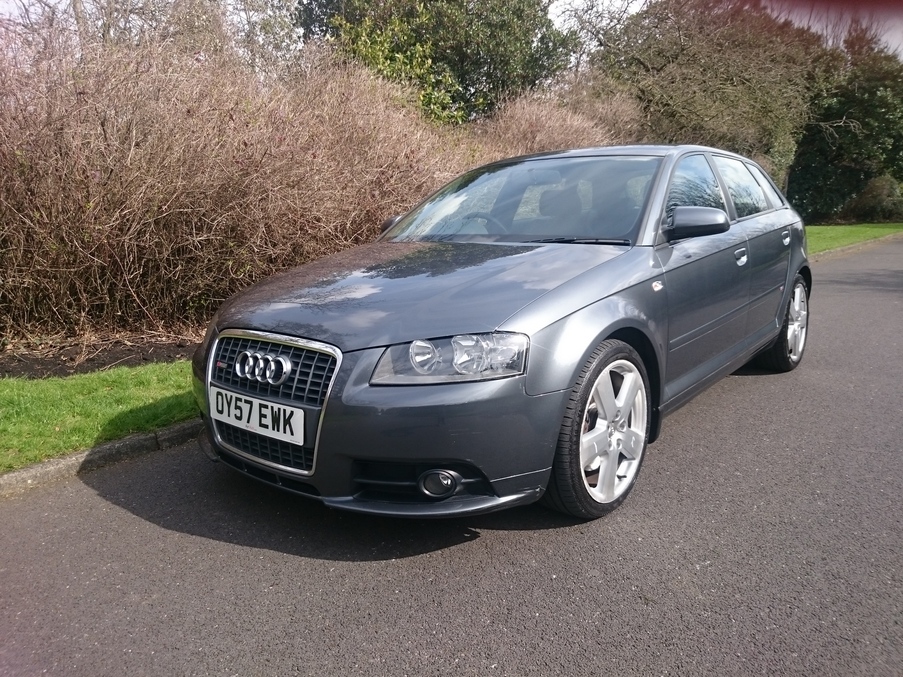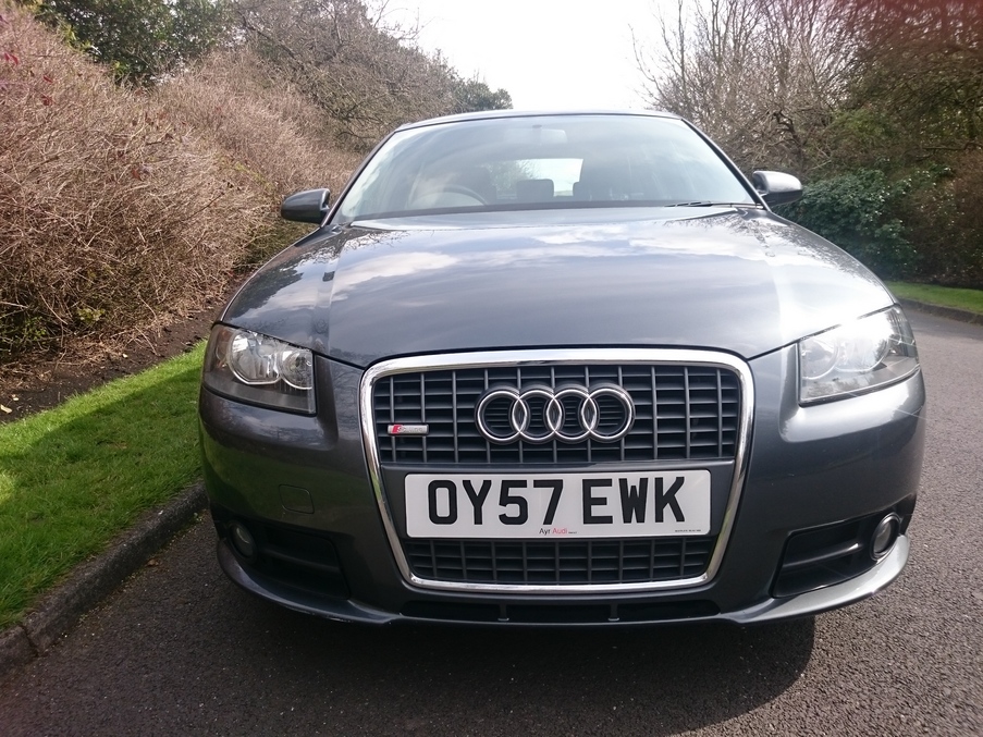 Fantastic value S Line A3 with Full leather, just serviced with cambelt in 2014., Last serviced on 03/04/2016 at 69,296 miles, Service history, Black Full leather interior, Upholstery Leather, Alloy Wheels (18in), Climate Control, Alarm, Computer (Driver Information System), Electric Windows (Front/Rear), In Car Entertainment (Radio/CD), Tinted Glass. 5 seats, Metallic Dolphin Grey, Full dealer facilities including warranty and finance at competitive rates subject to status.
