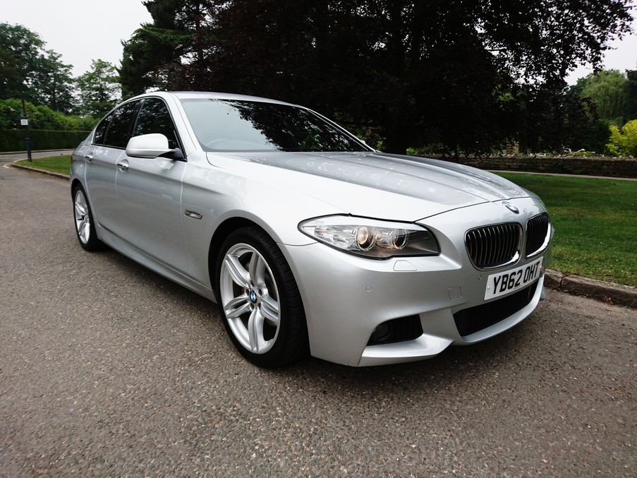 Stunning 525d M Sport with a fantastic specification including Professional Navigation, Full Dakota Leather, Heated Seats and more. This vehicle has received our full safety check and a full service with MOT., Upgrades - Full Black Dakota Leather, Alloy Wheels - 19in M Double-Spoke Style 351M, Navigation System - Professional, Sport Automatic Transmission, Xenon Headlights, Sports Seats with Heating, Exterior Mirrors - Folding, Automatically Dimming, Anthracite Alcantara Headlining, Metallic Paintwork, Last serviced on 25/05/2018 at 59,288 miles, Service history, Black Full leather interior, Standard Features - 18in Light Alloy M Double - Spoke Style 350M with 245/45 R18 Run - Flat Tyres and Locking Wheel Bolts, Air Conditioning, Automatic with Extended Features, Alarm System, Alarm System (Thatcham 1) with Remote Control, Automatic Air-Conditioning - Extended Features, BMW Professional Radio with Single CD Player (with MP3 Playback Capability), Bluetooth Telephone Preparation, Cruise Control with Brake Function and Speed Limiting Function, Electric Windows - Front and Rear, with Open/Close Fingertip Control, Anti - Trap Facility and Comfort Opening/Closing Function All Round, Enhanced Bluetooth Telephone Functionality, Heated Seats, Front, Hill - Start Assistant, Keyless Starting of Engine Ignition - Start/Stop Button, On - Board Computer (OBC), Park Distance Control (PDC), Front and Rear, Rain Sensor, Seat Heating, Front, Standard Seats - Front, Part - Electric Adjustment, Tyre Puncture Warning System (TPWS), USB Audio Interface, Upholstery - Dakota Leather, Windows - Heat - Insulated, Tinted All Round. 5 seats, Metallic Titan Silver, Full dealer facilities including warranty and finance at competitive rates subject to status., 2 owners, Due to our high turnover of stock we recommend you call to book an appointment prior to viewing.