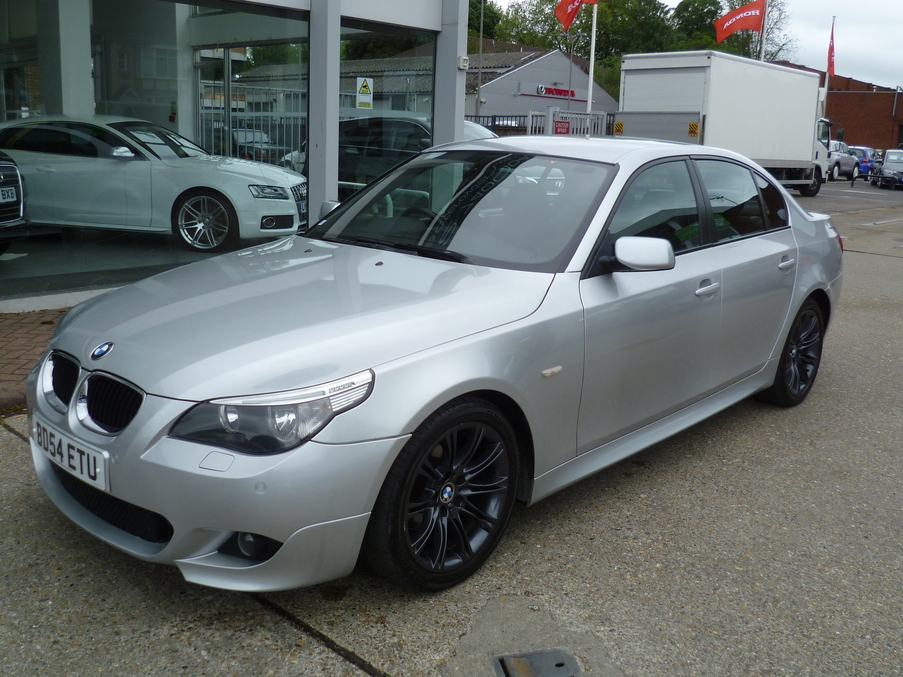 4 Doors, Automatic, Saloon, Diesel, 2004 54 Reg, 89000 miles, Metallic Silver. Fantastic value 525d Sport in Silver with Black, Part Leather Electric Seats, Anthracite M Sport Alloy Wheels, Automatic Headlights and Wipers, Front and Rear Parking Sensors and a Full Service History. ABS, Air conditioning, Alloy wheels, Cruise control, Front armrest, Immobiliser, Passenger airbag, Rear armrest, Radio/CD, Rear headrests, Sports seats, Side airbags, Traction control, Trip computer, Front electric windows, Front fog lights, Electric door mirrors, PAS, Steering wheel rake adjustment, Drivers airbag, Partial leather seat trim, Rear electric windows, Alarm, Body coloured bumpers, 3x3 point rear seat belts, Audio remote control, Height adjustable drivers seat, Steering wheel reach adjustment, Reverse parking aid, Front head restraints, Isofix child seat anchor points, Service indicator, Electrically adjustable drivers seat, Electrically adjustable passenger seat, Remote central locking. Insurance Group:17, Full dealer facilities including warranty, 5 day free drive away insurance and finance at competitive rates subject to status.
