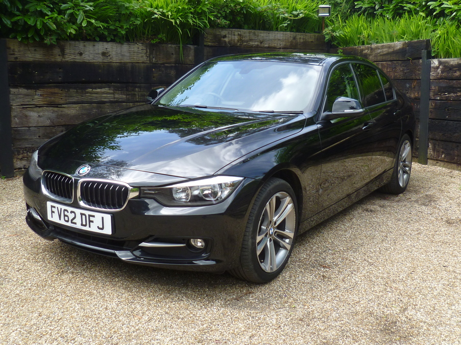 Solid Black, Incredible value 320d Sport Saloon, in black with Full Black Dakota Leather, 18" Double Spoke Alloys and Bluetooth., Upgrades - 18" Double spoke alloy wheels - style 397, Enhanced bluetooth telephone functionality with USB audio interface + voice control, Individual anthracite headlining, Individual sun protection dark tinted glazing for rear window and rear side door windows, Tax expires 31/05/2015, Full dealership history, Excellent bodywork, Black Dakota interior - Excellent Condition, Tyre condition Excellent, Standard Features - Dual zone automatic air conditioning, Bluetooth telephone preparation with USB audio interface, Rear park distance control, Electric front and rear windows with one touch/convenient open/close function, BMW professional radio/CD/MP3, Electric power steering, Dynamic stability control plus, Dynamic Traction Control - DTC, Front sports seats with electric side bolster adjustment, Remote control alarm, Auxiliary point for auxiliary devices, Key integrated remote control central locking, Multi-function controls for steering wheel, Electric adjustable door mirrors, Heated door mirrors, Electronic immobiliser, Manual adjustable height/backrest/length front seats, Interior lights pack - 3 Series Saloon. 5 seats, Full dealer facilities including warranty and finance at competitive rates subject to status. p/x welcome