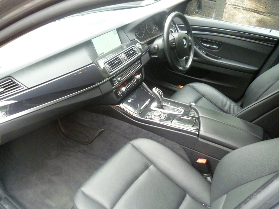 Metallic Space Grey, Fantastic Spec 530d with Widescreen Navigation, Full Black Leather and a Full BMW Main Dealer Service History, Upgrades - Navigation System Professional Multimedia with 12 GB HDD with iDrive controller + 10" display, Park assist system, Last serviced on 01/04/2014 at 46,665 miles, Full dealership history, Black Full leather interior, Standard Features - Dakota leather upholstery, Bluetooth Telephone preparation, Dual Zone automatic air conditioning with rear vents and auto recirculation, Front/rear Parking distance control, 17" light V spoke alloy wheels - style 236, Electric front and rear windows with fingertip open/close + anti-trap all round, Part electric adjustable front seats, Dynamic stability control plus, Dynamic Traction Control - DTC, Remote control Thatcham category 1 alarm, Auxiliary point for auxiliary devices, Multi-function controls for steering wheel, Electric + heated aspheric door mirrors, Engine immobiliser, Smokers pack. 5 seats, Full dealer facilities including warranty and finance at competitive rates subject to status.
