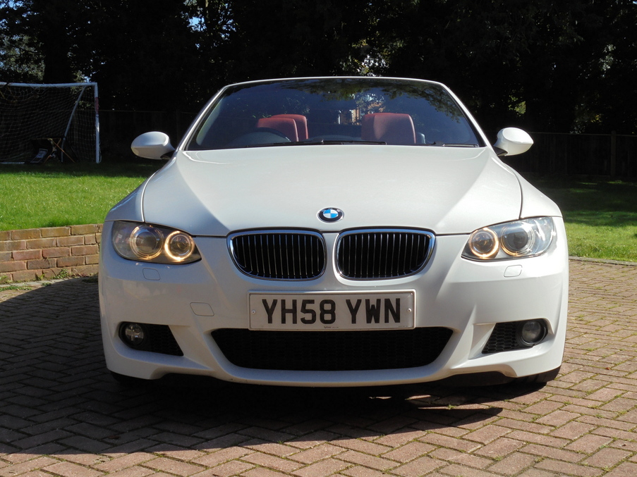 Stunning 335i Convertible in Alpine White., Upgrades - Navigation System - BMW Professional Multimedia, Bluetooth Telephone Prep with Telematics, 19" M Sport Double Spoke Alloys 225, Electric Seats with Memory, Sports Seats with Seat Heating, Xenon Headlamps, Multi Function Steering Wheel, Exterior Mirror Package, M Sport Package, Armrest Front With Sliding Adjustment, Park Distance Control (PDC), Full dealership history, Black Full leather interior, Standard Features - Air Conditioning, Automatic with Two - Zone Control, Cruise Control with Brake Function, Park Distance Control (PDC), Rear, Alarm System (Thatcham 1), Anti - Whiplash Front Head Restraints, BMW Professional Radio with Single CD Player and Auxiliary Input Point for Auxiliary Playing Devices (e.g. MP3 Player), Electric Windows - Front and Rear, with Open/Close Fingertip Control, Hill - Start Assistant, On - Board Computer (OBC), Rain Sensor, Seat Adjustment - Front, Electric with Driver Memory, Start - Stop Button, Tyre Puncture Warning System (TPWS). 4 seats, Solid Alpine White, Full dealer facilities including warranty and finance at competitive rates subject to status.