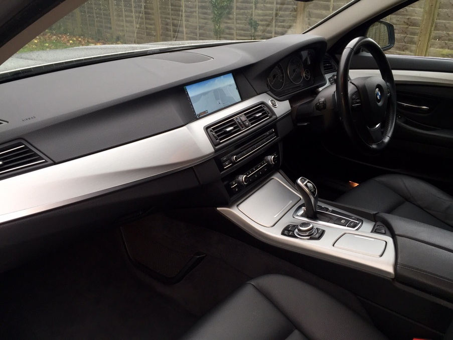 Fantastic value, new shape 530d with over £6000 worth of factory options, Upgrades - Navigation System - Professional, Heated Front Seats, Xenon HeadLights, Adaptive Headlights, Bluetooth Telephone Preparation, High-Beam Assistant, Exterior Mirrors/Folding/Autodimming, Sun Protection Glazing, 18in V-Spoke Style 328, Sport Automatic Transmission, Sports Leather Steering Wheel, Park Distance Control (PDC), Air Conditioning, Automatic with Four-Zone Control, Black Full leather interior, Standard Features - Automatic Air-Conditioning - Extended Features, Cruise Control with Brake Function, Park Distance Control (PDC), Front and Rear, 17 Light Alloy Radial - Spoke Style 244 Wheels with Run - Flat Tyres, Alarm System (Thatcham 1), BMW Business Radio with Single CD Player (with MP3 Playback Capability), Electric Windows - Front and Rear, with Open/Close Fingertip Control, Antitrap Facility and Comfort Closing Function All Round, Hill - Start Assistant, Metallic Paintwork, On - Board Computer (OBC), Control Display - 6.5in Colour Display Screen, Rain Sensor, Standard Seats - Front, Part - Electric Adjustment, Tyre Puncture Warning System (TPWS). 5 seats, Metallic Titan Silver, Full dealer facilities including warranty and finance at competitive rates subject to status,
