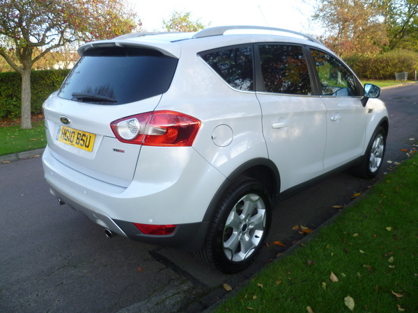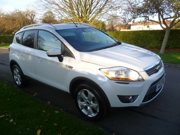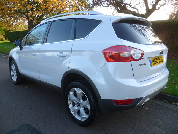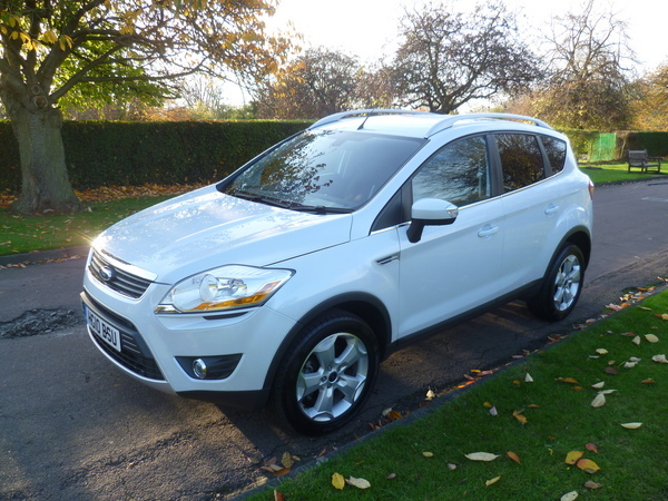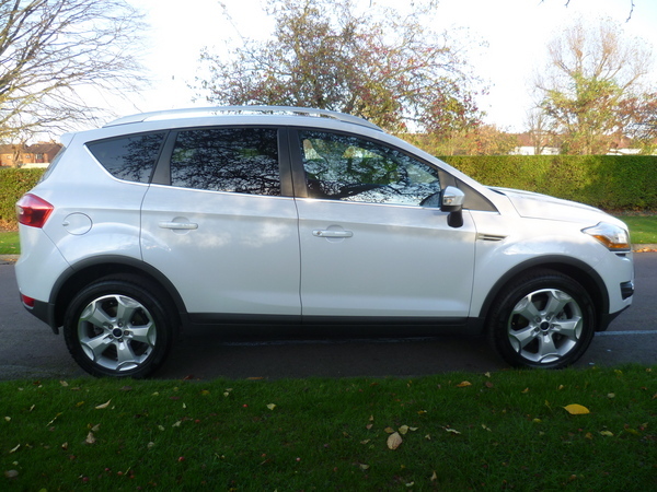 5 Doors, Manual, Estate, Diesel, 2010 10 Reg, 8000 miles, White, 1 Owner. Immaculate, extremely low mileage, four wheel drive titanium Kuga in White. It has been serviced at a Ford main dealer, with only 8000 miles on the clock this vehicle is still covered by the manufacturers warranty. This is a genuine four wheel drive model which is perfect for the oncoming snowy conditions, the cheaper, two wheel drive model will not benefit you in snow the way that this vehicle would. PAS, Remote central locking, Alarm, Immobiliser, Front electric windows, Climate Control, Alloy wheels, Radio/CD, Partial leather seat trim, Cruise control, Front head restraints, Rear electric windows, Rear wiper, Isofix child seat anchor points, Passenger airbag, Traction control, Lumbar support, Steering wheel rake adjustment, Front fog lights, Folding rear seats, Electric door mirrors, Audio remote control, Trip computer, Side airbags, Steering wheel reach adjustment, Sports seats, Rear headrests, 3x3 point rear seat belts, Front armrest, Rear armrest, Heated door mirrors. Full dealer facilities available including 7 day free drive away insurance and finance at competitive rates subject to status.