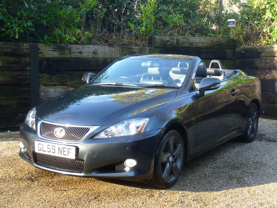 Metallic GREY, Stunning IS250C With Full Blacke Electric Leather Seats and A Full Lexus Service History. Due now but will be completed before collection., Upgrades - 18" Anthracite 5 Spoke Alloy Wheels, Black Leather Seats - Heated and Electric, Satellite Navigation, Bluetooth Telephone Connectivity, Bluetooth Media, Comfort Access, Xenon Headlights, Auxiliary Media, Reverse Parking Camera, Last serviced on 02/11/2012 at 21,516 miles, Full dealership history, Excellent bodywork, Black Full leather interior - Excellent Condition, Tyre condition Excellent, Standard Features - Navigation pack - IS Convertible, Leather seats, 18" alloy wheels, 8 way electric adjust front seats with memory, Audio remote control, Auxillary socket for external MP3 player, Climate control/driver/passenger temperature controls, Cruise control, Electric adjustable steering column, Electric folding and heated door mirrors, Electric power steering, Electrochromic door mirrors, Front and rear electric windows, Front/rear Parking distance control, Heated and ventilated front seats, Immobiliser, Intrusion sensor and alarm, Radio/6 CD autochanger, Traction control, USB connection. Full dealer facilities including warranty, 5 day free drive away insurance and finance at competitive rates subject to status. p/x welcome