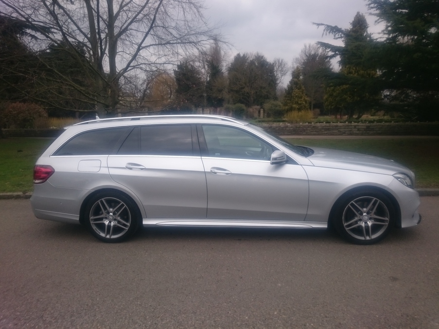 Incredibly well maintained, new shape E220 AMG Estate. Six verified Mercedes dealer services have kept this vehicle in pristine condition. COMAND Sat Nav, Nappa Leather, AMG styling plus all of the added options included in AMG Sport specification make this example a must see., Upgrades - Heated Front Seats, COMAND DVD Navigation, DAB Digital Radio, AMG Double Spoke 18" Alloys, AMG Sports Package, AMG Styling Package, Leather Pack, Sports Seats, Privacy Glass, Upholstery - Nappa Leather, Metallic Paint, Last serviced on 23/02/2018 at 111,746 miles, Full dealership history, Black Full leather interior, Standard Features - COMAND Online System with 7-Inch Colour Display, Hard Disk Drive (HDD) Map Navigation System, Cruise Control with Speedtronic, Active Parking Assist with Parktronic, Linguatronic Voice Control, DAB Digital Radio Tuner, Automatic Climate Control - Two -Zone, Front Seats - Electrical Height and Back Adjustment, Radio, Single CD MP3 Compatibility, 7in Colour Display, 18in AMG Alloy Wheels - 5 - Twin - Spoke Design with (Front 245/40 Tyres and Rear 265/35 Tyres) and Locking Wheel Bolts, Rain - Sensing Wipers, Alarm System, Upholstery - Artico Artificial Leather/ Dinamica Microfibre with Contras Stitching, Tyre Pressure Loss Warning System, Bluetooth Interface for Hands - Free Telephony, Electric Windows (4). 5 seats, Metallic Bright Silver, Full dealer facilities including warranty and finance at competitive rates subject to status., Due to our high turnover of stock we recommend you call to book an appointment prior to viewing.
