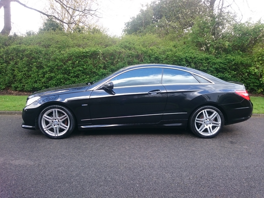 Stunning E Class Coupe with a fantastic specification. Recently serviced at Mercedes Benz of Chelsea, Upgrades - Heated Front Seats, COMAND + Media Interface, AMG Styling Package, AMG Double Spoke 18" Wheels, Upholstery Leather, DAB Radio, AUTOMATIC HIGH BEAM SWITCH (IHC), Metallic Paint, Parking Guidance, Last serviced on 31/12/2015 at 35,243 miles, Full service history, Black Full leather interior, Standard Features - Automatic Climate Control - Two -Zone, Parktronic with Advanced Parking Guidance, 18in AMG Alloy Wheels (4) - 6 - Twin - Spoke Design with (Front 235/40 Tyres and Rear 255/35 Tyres) and Locking Wheel Bolts, Alarm System, Audio 20 Radio with Single CD Drive (MP3 Compatible) and Aux - in Socket, Bluetooth Interface for Hands - Free Telephony, Electric Windows (4) - One - Touch Opening and Closing Including Obstruction Sensors, Multi - Contour Front Seats with Electrical Height/Back Adjustment, Tyre Pressure Loss Warning System. 4 seats, Metallic Obsidian Black, Full dealer facilities including warranty and finance at competitive rates subject to status,