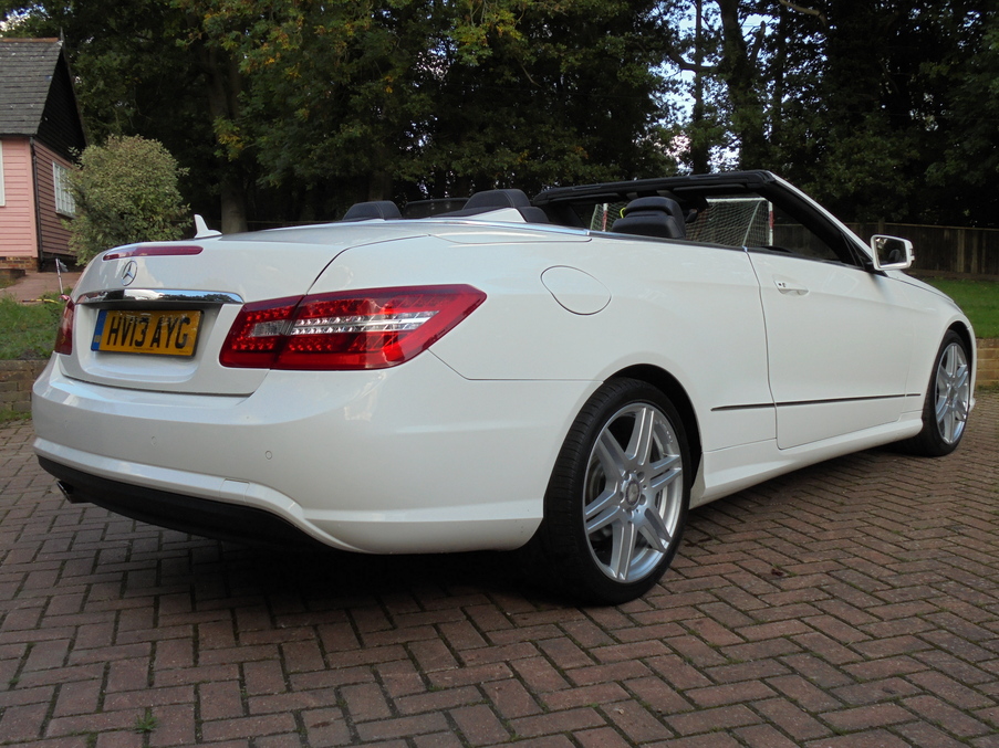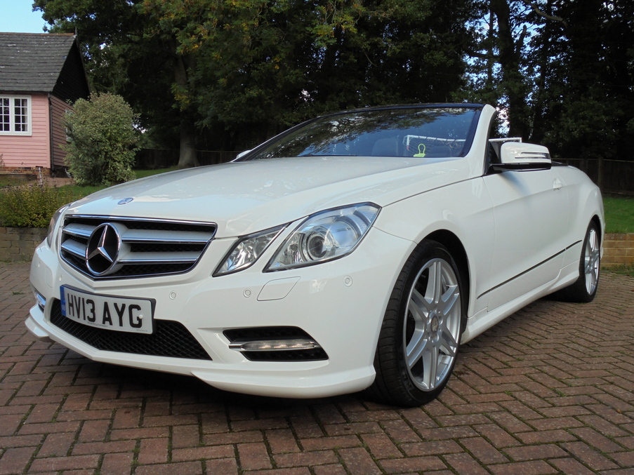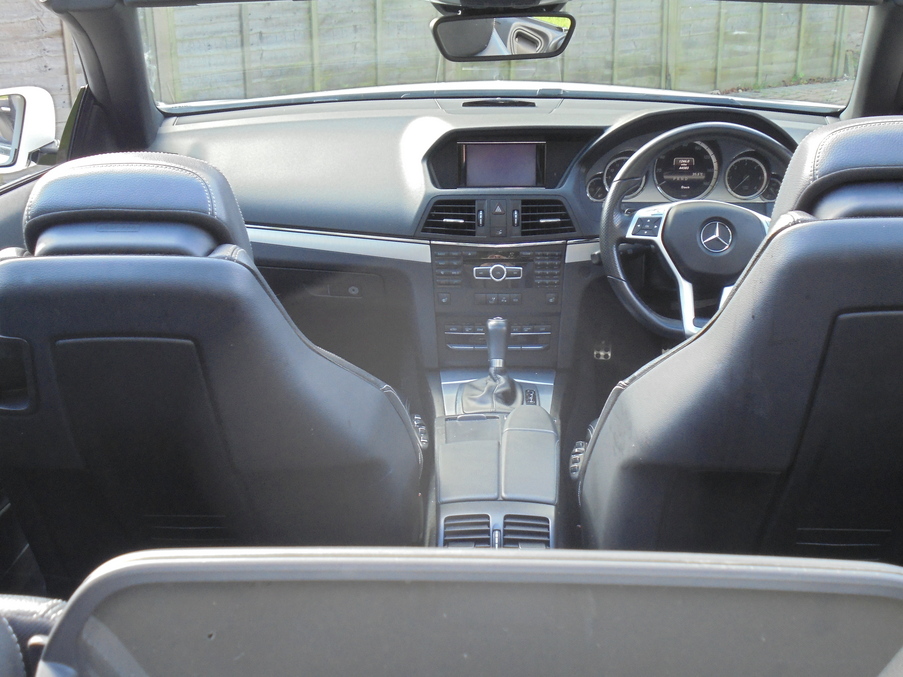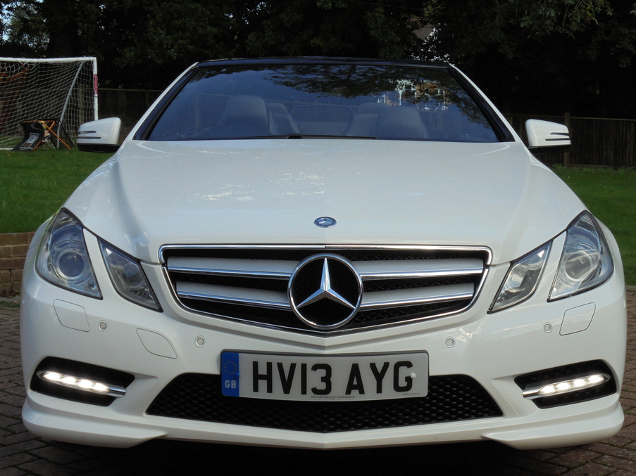 Stunning E220 Convertible, Upgrades - Polar White, Satellite Navigation Module can be fitted for £250, AMG Styling, Alloy Wheels-18in AMG Twin 5-Spoke, LED Daytime Running Lights, Heated Front Seats, Black Full leather interior, Standard Features - Automatic Climate Control - Two -Zone, Cruise Control with Speedtronic Variable Speed Limiter, Parktronic - Front and Rear, with Advanced Parking Guidance, Alarm System, Audio 20 Radio with Single CD Drive (MP3 Compatible), 5.8in Colour Display, Aux -in Socket, Bluetooth Interface for Hands - Free Telephony, Electric Windows (4), Multi - Contour Front Seats Electrical Height and Back Adjustment, Rain - Sensing Wipers, Tyre Pressure Loss Warning System. 4 seats, Solid Polar White, Full dealer facilities including warranty and finance at competitive rates subject to status.