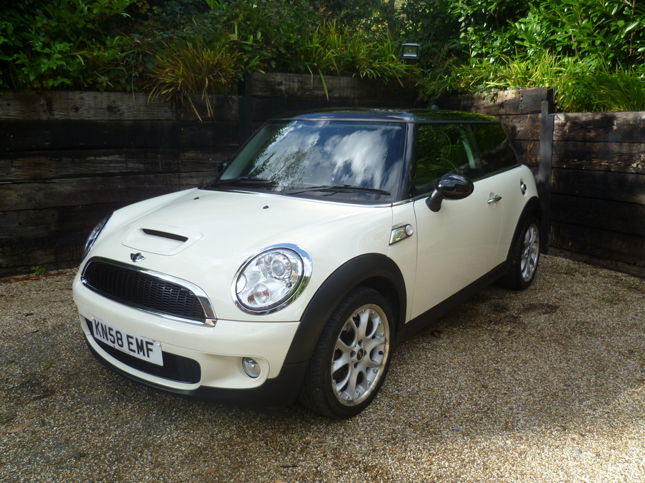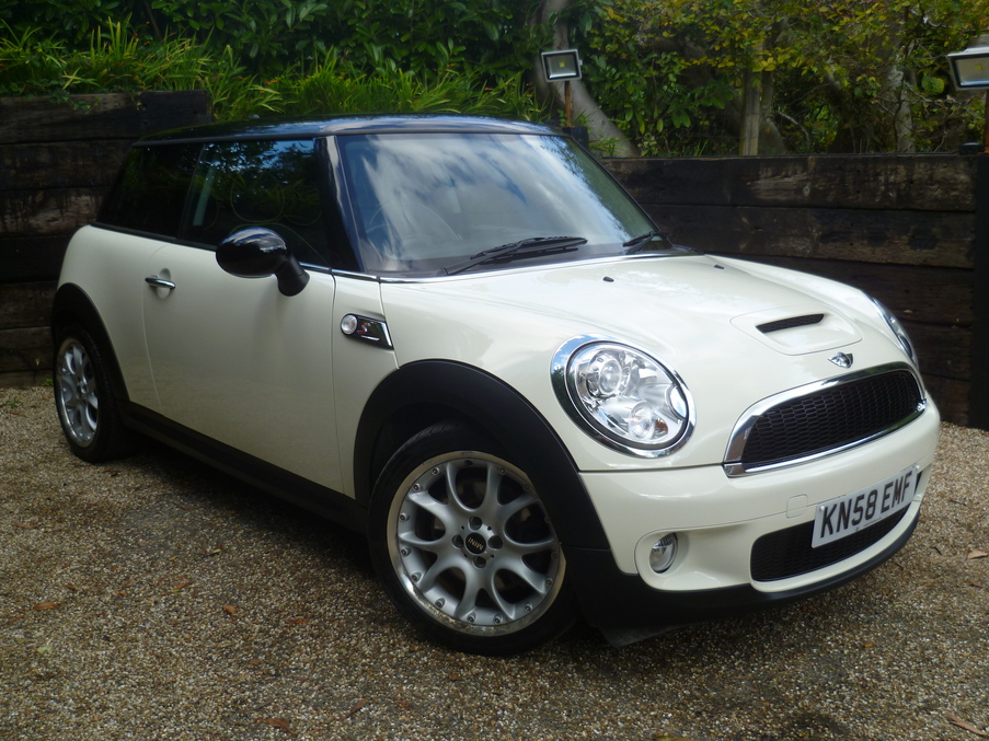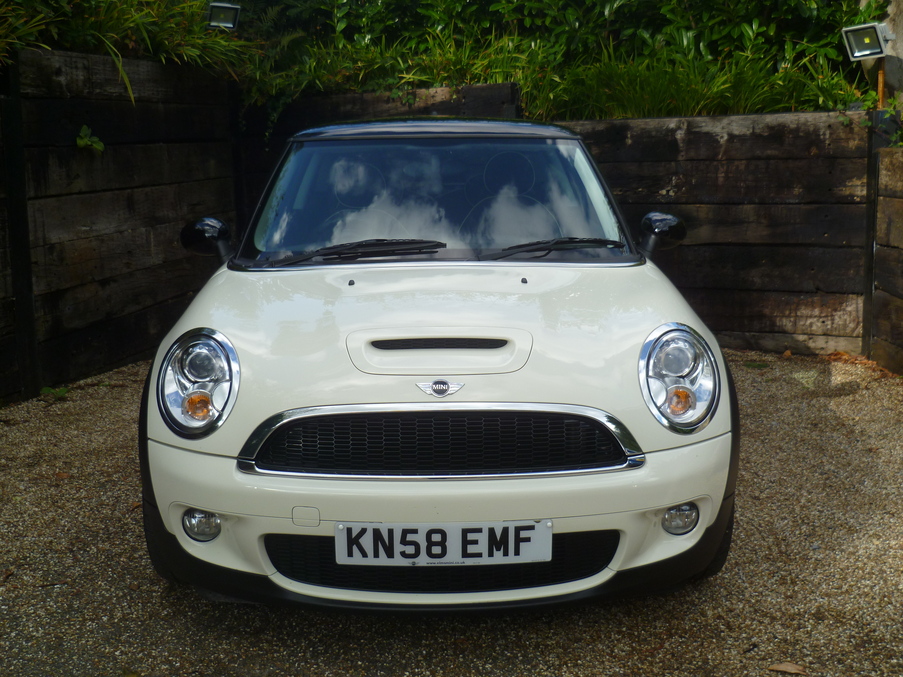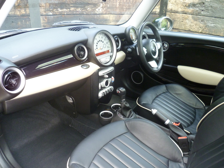 Solid Pepper White, Stunning Cooper S Auto with Chili Pack and £6000 worth of Factory options including Lounge Leather, Piano Black Interior, Panoramic Sunroof and 17" Web Alloys, Lounge Leather upholstery + lumbar support, Electric panoramic glass sunroof, 17" Web spoke light alloy wheels+ run flat tyres, DAB digital radio module, Piano black interior trim, Bi-Xenon headlights / auto height adjust/ headlight washers, Automatic air conditioning, Tinted rear windows, Rear park distance control, On board computer, MP3 compatible 6 CD changer in glovebox, Black roof and mirror caps, Chrome line exterior, Front fog lights, 3 spoke sports leather steering wheel, Colour line - Cream white, Interior lights pack - Cooper/Cooper S, Storage compartment pack - Cooper S, Full service history, Black Full leather interior, Standard Features - Anti trapping/one touch open close front windows, Electric front windows, Speed sensitive power steering, DSC-Dynamic Stability Control, Active Stability Control + Traction control, Run flat indicator, Remote control alarm, Auxiliary input socket, Electrically adjustable door mirrors, Electronic immobiliser, Driver's manual seat height adjustment with backrest memory, No smoker package. 4 seats, Full Dealer Facilities including warranty and finance at competitive rates subject to status. p/x welcome