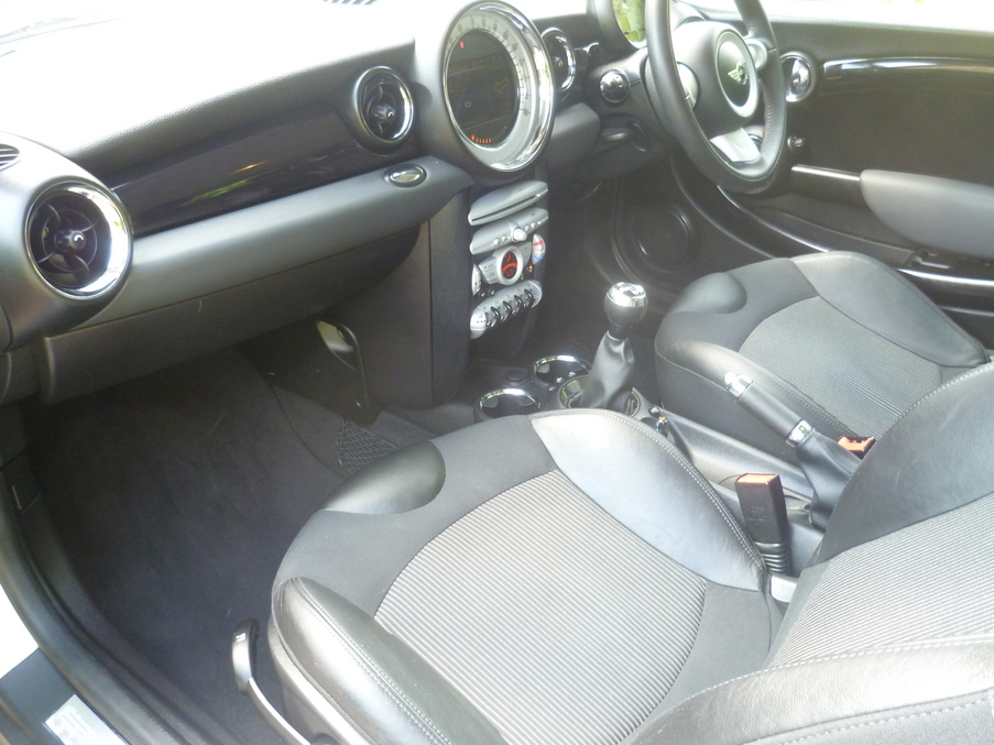 Solid Pepper White, Stunning Pepper white 2nd generation Cooper with a great specifiaction, Upgrades - CHILI Pack, Satellite Navigation System, Bi-Xenon Headlights, Automatic Air Conditioning, 3-Spoke Sports Leather Steering Wheel, Three Spoke Sports Leather Steering Wheel, Alloy Wheels - 16in 5 Star Blaster Spoke, Bonnet Stripes - Black, Colour Line - Dark Grey, Black Part leather interior, Standard Features - Air-Conditioning, Alloy Wheels, Computer, Electric Windows, In Car Entertainment, Tinted Glass, Upholstery Cloth/Leather. 4 seats, Full dealer facilities including warranty and finance at competitive rates subject to status.