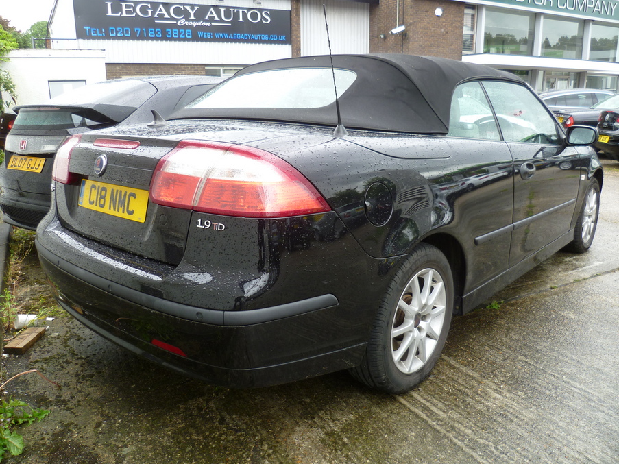 SAAB 9-3 1.9 TiD Linear Convertible, 2 Doors, Automatic, Convertible, Diesel, 2006 56 Reg, 100000 miles, Metallic Black, MOT-02-2014. Full service history including cam belt change at 78,332 miles, Full Leather Upholstery, ABS, Air conditioning, Alloy wheels, Front armrest, Immobiliser, Passenger airbag, Radio/CD, Rear headrests, Sports seats, Side airbags, Traction control, Front electric windows, Electric door mirrors, Heated door mirrors, PAS, Remote central locking, Steering wheel rake adjustment, Drivers airbag, Rear electric windows, Alarm, Body coloured bumpers, Audio remote control, Height adjustable drivers seat, Steering wheel reach adjustment, Cloth seat trim, Front head restraints, Isofix child seat anchor points, Solid Paint, Space saver spare wheel, Service indicator. Insurance Group:13, Full dealer facilities including warranty, 5 day free drive away insurance and finance at competitive rates subject to status. p/x welcome, p/x welcome
