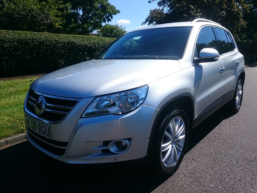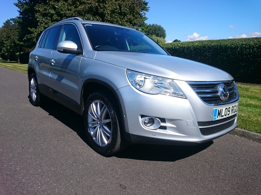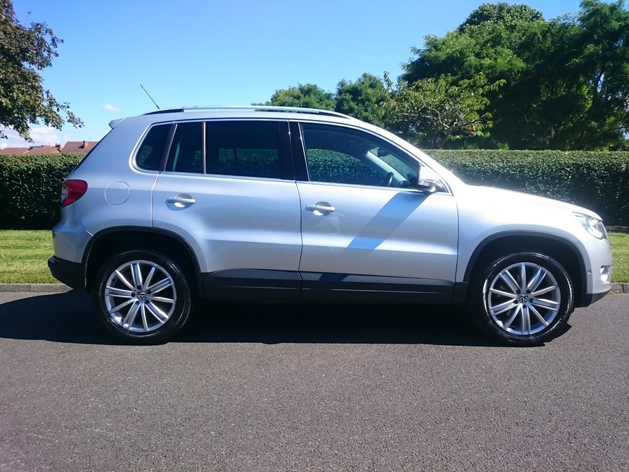 Genuine low mileage Tiguan diesel with a fantastic specification and a full service history, recently completed. This also includes a cambelt replacement in June 2014., Upgrades - DVD Navigation/Radio System, Leather Upholstery, Heated Seats, Electric Adjustable Drivers Seat, HDD Media, DAB Radio, Optical Parking System, Last serviced on 12/06/2016 at 51,647 miles, Full service history, Black Full leather interior, Standard Features - Air Conditioning, Climatic Semi - Automatic Control, 7Jx18in Sierra Alloy Wheels, Alarm with Interior Protection, Alloy Wheels, Four 7J x 18 Sierra with 235/50 R18 Tyres and Anti-Theft Wheel Bolts, Drivers and Front Passengers Whiplash-Optimised Head Restraints, Electric Windows, Front and Rear, Flat Tyre Indicator, Heat Insulating Tinted Glass, Heat Insulating Tinted Glass 65 Perc. Light Absorbing from B Pillar Backwards, Multifunction Computer (Midline), RCD 510 Touch-Screen Radio/Dash-Mounted MP3 Compatible 6 CD Autochanger, SD Card Reader and AUX-in Socket for Connection to an External Multimedia Source, Rain Sensor. 5 seats, Metallic Silver, Full dealer facilities including warranty and finance at competitive rates subject to status.