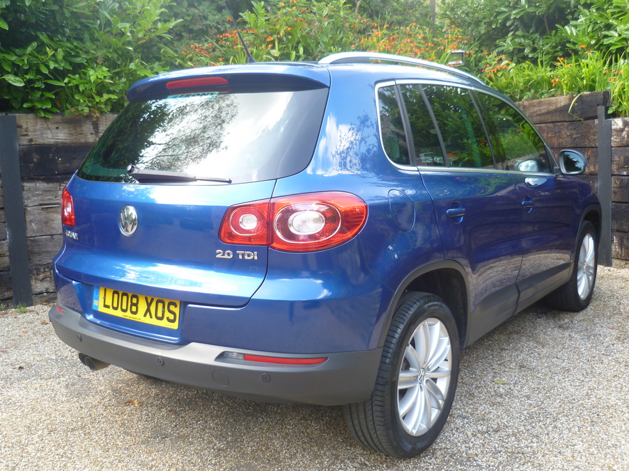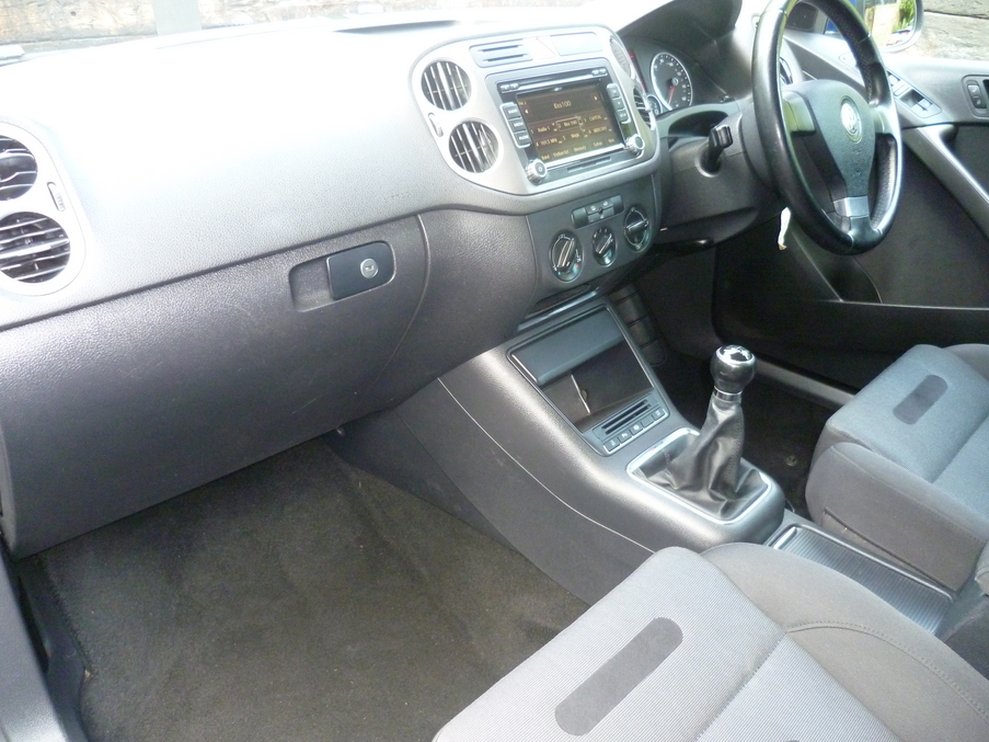 Pearlescent Biscay Blue, Upgrades - Front/rear Parking distance control, Park assist - Auto parking, Pearlescent paint, Next MOT due 25/08/2015, Full dealership history, Black Cloth interior, Four wheel-drive, Standard Features - Air conditioning 'Climatic' semi automatic control, 18" Sierra alloy wheels with flat tyre indicator + anti theft wheel bolts, Front and rear electric windows, RCD 510 touch screen radio/dash mounted 6 cd/mp3 auto-changer 8 speakers and aux-in socket in front centre console, Speed sensitive power steering, Height/reach adjust steering wheel, Electronic stabilisation programme with electronic differential lock + traction control, Front sports seats with height/lumbar adjust, Alarm with interior protection, Electric heated + adjustable door mirrors, Electronic engine immobiliser, Driver seat height adjustment, Convenience pack - Tiguan, 4 Motion. 5 seats, Full dealer facilities including warranty up to three years