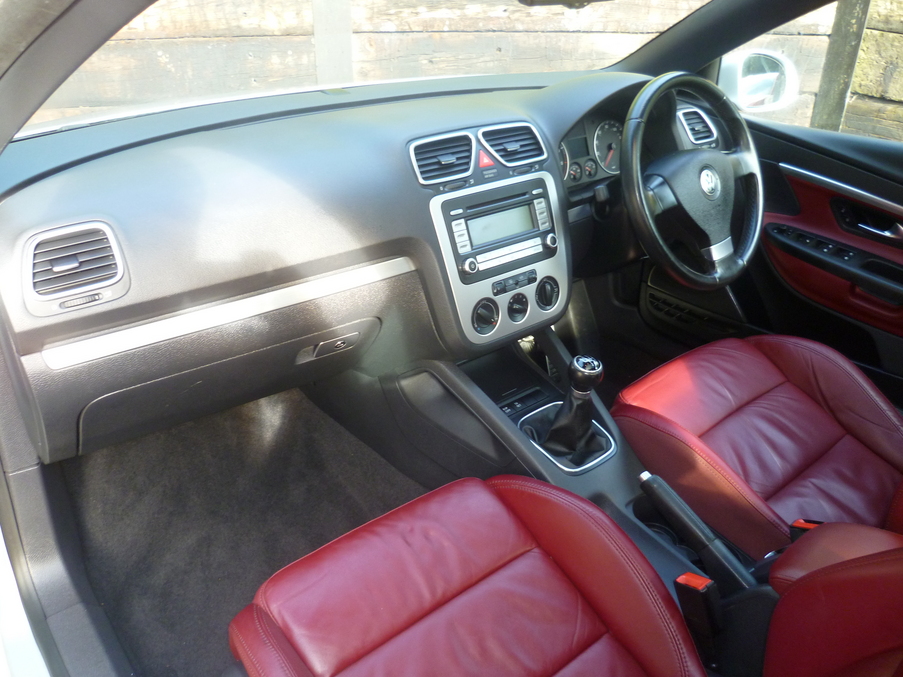 Metallic Reflex Silver, Upgrades - Nappa leather upholstery + heated front seats, Luxury Pack - Eos, 18" Chicago alloy wheels with titanium silver finish + anti theft wheel bolts, Radio system RCD 500 + front loading 6 CD changer + 8 speakers, Wind deflector, Metallic paint, Next MOT due 02/11/2015, Last serviced on 01/11/2014 at 54,102 miles, Service history, Red Full leather interior, Standard Features - CSC roof system - 5 section folding roof including slide/tilt sunroof, Semi-automatic air conditioning, Rear parking sensor, 17" Solitude alloy wheels + anti theft wheel bolts, Front and rear electric windows, RCD 300 radio/mp3 single CD player with 8 speakers, Speed sensitive variable PAS, Height/reach adjust steering wheel, ESP with EDL + ASR, Front sports seats, Alarm with interior protection, Elec heated + adjust door mirrors, Electronic engine immobiliser, Easy entry slide seats (access to rear seats), Front seats with height+lumbar adjust. 4 seats, Full dealer facilities including warranty and finance at competitive rates subject to status., Experian auto check clear, p/x welcome