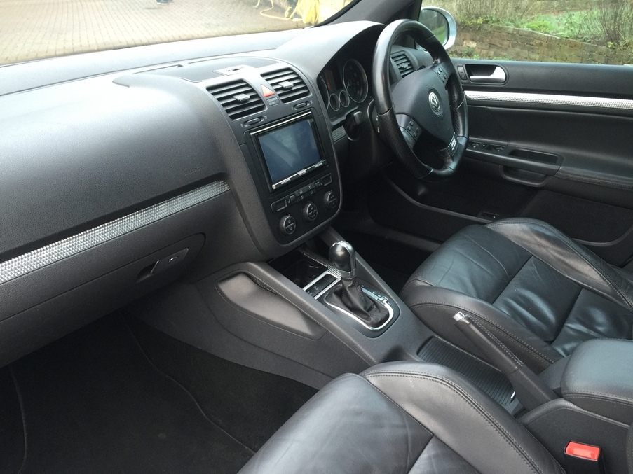 Fantastic value R32 DSG 5dr with Full Leather and Satellite Navigation including DVD Player. Full Volkswagen Service History, Upgrades - Satellite Navigation, DVD Player, Leather Upholstery, Xenon Headlamps, Front Centre Arm Rest, Rear Tinted Windows, Metallic Paint, Last serviced on 01/09/2015 at 102,673 miles, Full dealership history, Black Full leather interior, Four wheel-drive, Standard Features - 2Zone Electronic Climate Control with Automatic Air Recirculation, Cruise Control, Heated Front Seats, Alarm with Interior Protection, Alloy Wheels, Four 7.5J x 18in Omanyt with 225/40 R18 Tyres and Anti - Theft Wheel Bolts, Drivers and Front Passengers Whiplash-Optimised Head Restraints, Electric Windows, Front and Rear, Flat Tyre Indicator, Heat Insulating Blue Tinted Glass, Multifunction Computer (Midline), Rain Sensor. 5 seats, Metallic Silver, Full dealer facilities including warranty and finance at competitive rates subject to status,