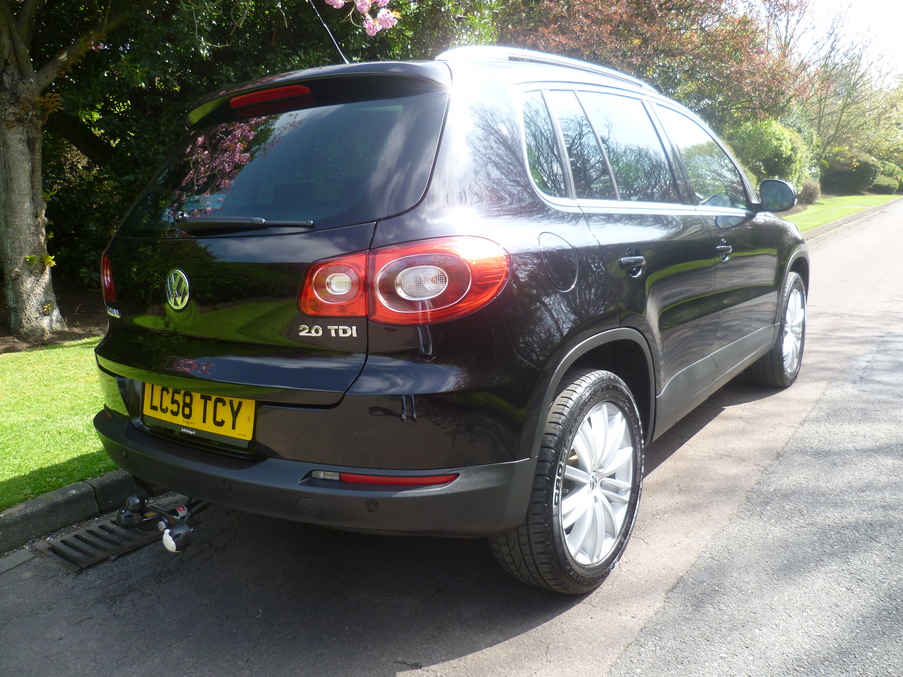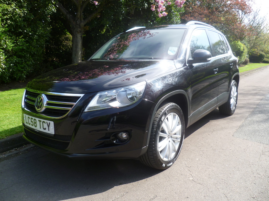 5 Doors, Automatic, Estate, Diesel, 2008 58 Reg, 51000 miles, Metallic Black, 1 Owner. Stunning, full 4x4 Tiguan in Black with Full Main Dealer Service History, Factory fitted towbar, Full Electric Panoramic Sunroof and Auto Parking Aid. ABS, Adjustable seats, Adjustable steering column/wheel, Alloy wheels, CD Multichanger, Central locking, Cloth upholstery, Climate Control, Colour coding - Body, Computer, Cruise control, Driver airbag, Electric mirrors, Electric windows, Electric sunroof, Foglights, Multi function steering wheel, Park distance control, Passenger airbag, Power assisted steering, Towbar, 4WD, Reverse parking aid. Insurance Group:9, Full dealer facilities including warranty, 7 day free drive away insurance and finance at competitive rates subject to status.